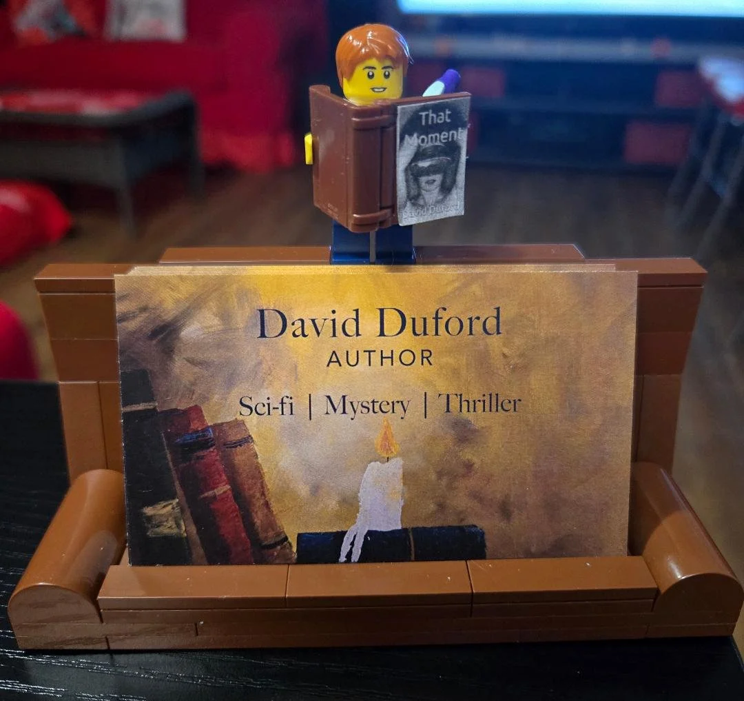 This is the little minifig pictured above. It was gifted to me by my stepdaughter and her husband last fall, and it’s a crazy-cool way to keep myself inspired while writing.